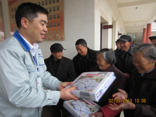 春節前夕,由公司黨支部、團支部共同組織,公司總經理陳尚法帶領黨員、團員和青年志愿者,走訪慰問了九江縣城門鄉敬老院,為那里的老人們送去100套床上用品和年畫,同時和他們親切交流,給他們送上節日的祝福與問候!...